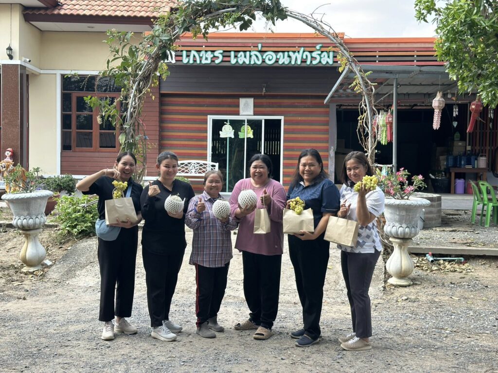 ณ กลุ่มวิสาหกิจชุมชนเกษรเมล่อนฟาร์ม หมู่ที่1 ตำบลแจงงาม อำเภอหนองหญ้าไซ จังหวัดสุพรรณบุรี