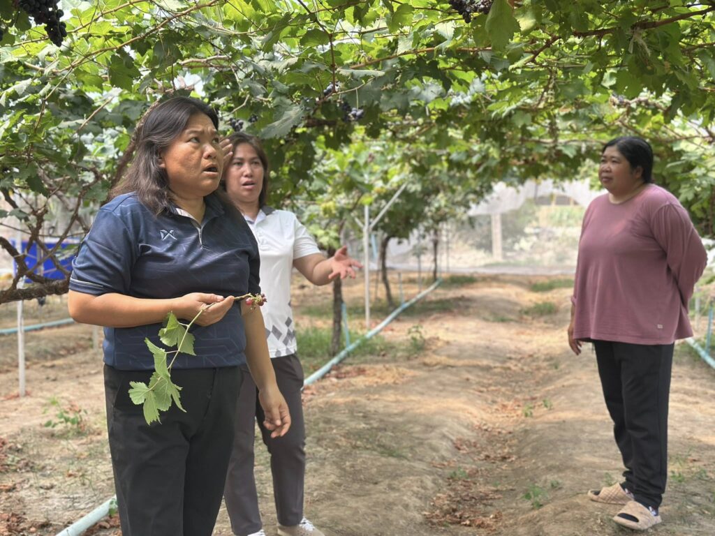 นางสาวพรรณี ศรีสวัสดิ์ เกษตรอำเภอหนองหญ้าไซ พร้อมด้วยเจ้าหน้าที่สำนักงานเกษตรอำเภอหนองหญ้าไซ เยี่ยมเยียน กลุ่มวิสาหกิจชุมชนเกษรเมล่อนฟาร์ม ซึ่งมีกิจกรรมปลูกเมล่อน และองุ่นหลากหลายสายพันธุ์ โดยมีการสอบถามถึงสถานการณ์ตลาดของเมล่อน และองุ่นที่ปลูกภายในกลุ่ม รวมถึงสอบถามปัญหาที่เกิดขึ้นจากการปลูกพืชของกลุ่ม เพื่อหาแนวทางการแก้ไขร่วมกัน พร้อมเยียมชมแปลงองุ่น