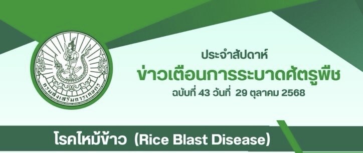 เตือนการระบาดศัตรูพืชกรมส่งเสริมการเกษตร เตือนการระบาดศัตรูพืช ฉบับที่ 43 วันที่ 29 ตุลาคม 2568 “โรคไหม้ข้าว”
