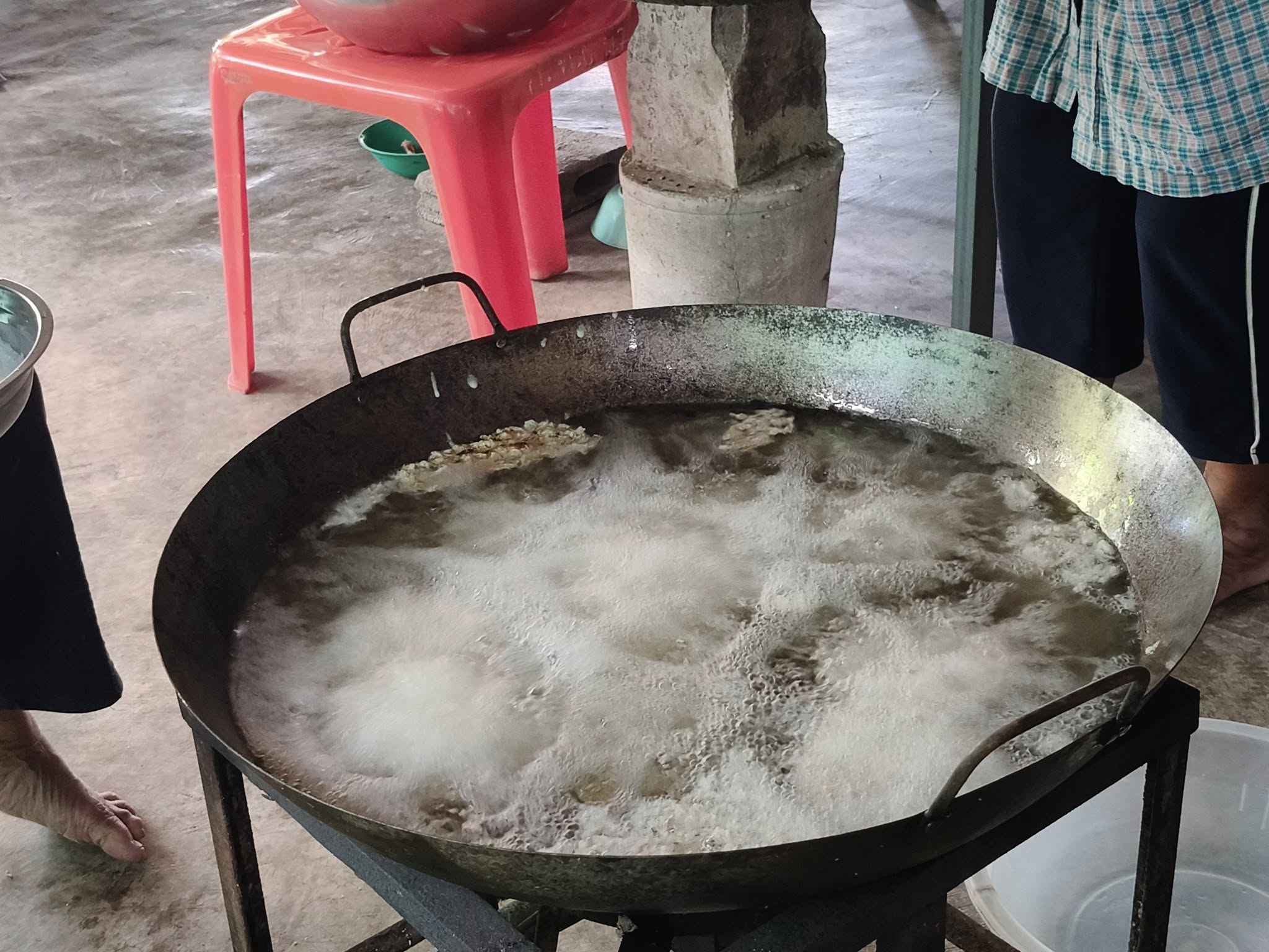 นางสาวกรรณิกา เสือแดง นักวิชาการส่งเสริมการเกษตรชำนาญการ รับผิดชอบงานส่งเสริมการเกษตรประจำตำบลปลายนา สำนักงานเกษตรอำเภอศรีประจันต์ ติดตามการดำเนินกิจกรรมของกลุ่มส่งเสริมอาชีพบ้านคลองชะอม โดยสมาชิกกลุ่มร่วมกันทำขนมกงเพื่อจำหน่ายให้กับลูกค้าในช่วงเทศกาลวันออกพรรษา โดยมีการสั่งจองล่วงหน้าในราคากงละ 10 บาท สามารถสร้างรายได้เสริมให้กับสมาชิกกลุ่มได้เป็นอย่างดี