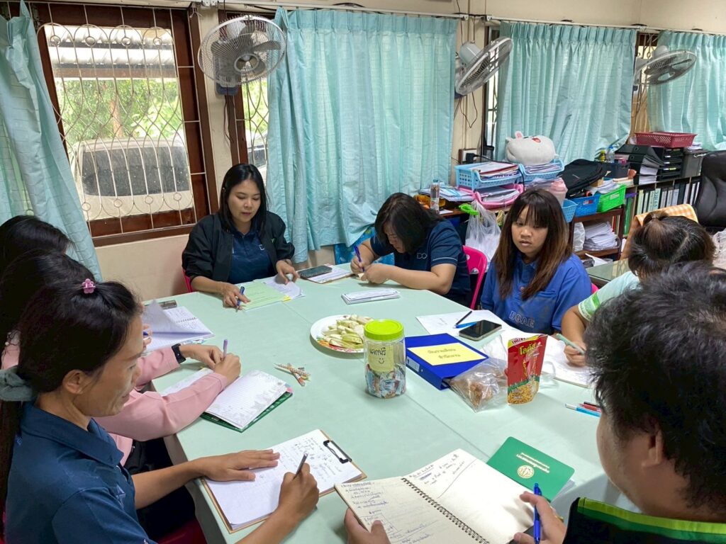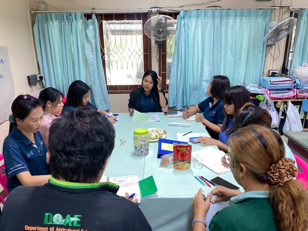 นางอรุณี อนันต์เวชานุวัฒน์ เกษตรอำเภอศรีประจันต์ พร้อมด้วยเจ้าหน้าที่สำนักงานเกษตรอำเภอศรีประจันต์ ประชุมสรุปผลการดำเนินงานในโครงการส่งเสริมการเกษตรตามระบบส่งเสริมการเกษตร (T&V system)