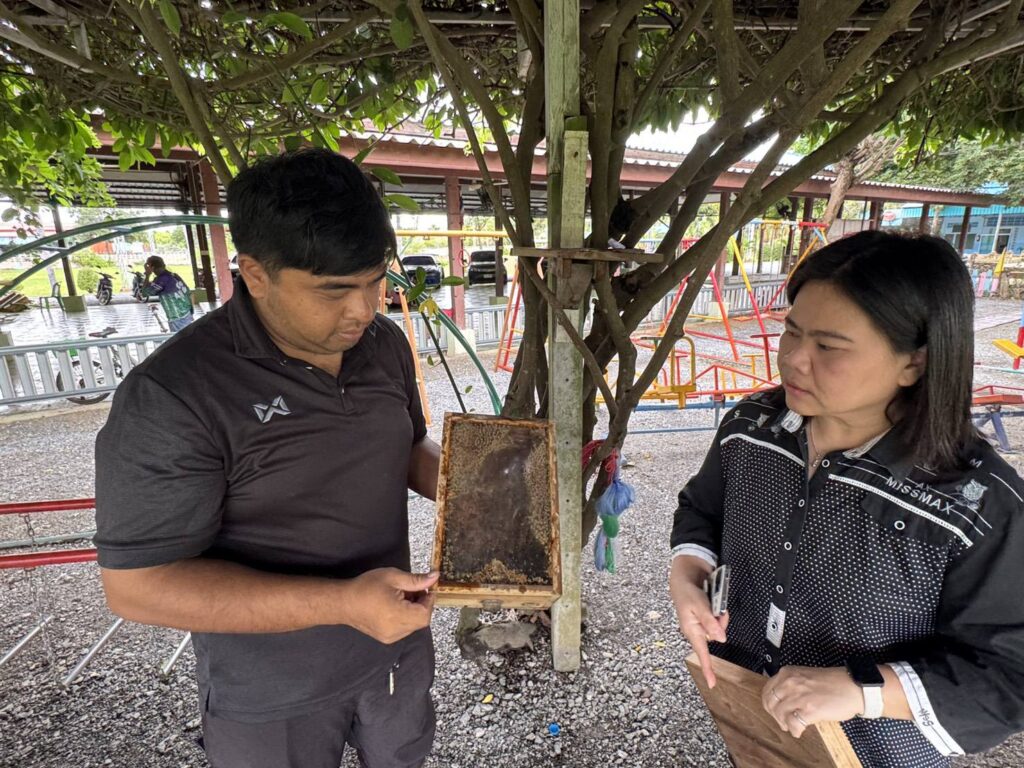 นางสาวกรรณิกา เสือแดง นักวิชาการส่งเสริมการเกษตรชำนาญการ พร้อมด้วยนางสาวเพชรไพลิน โสรถาวร นักวิชาการส่งเสริมการเกษตร สำนักงานเกษตรอำเภอศรีประจันต์ ติดตามการดำเนินงานกลุ่มยุวเกษตรกรโรงเรียนบ้านคลองชะอม โดยมีนายวรวุฒิ สมบูรณฺดี ครูที่ปรึกษากลุ่มยุวเกษตรกร พาติดตามกิจกรรมซึ่งมีการปลูกข้าวหอมมะลิในแปลงนา มีการเลี้ยงชันโรงหรือผึ้งจิ๋ว เพื่อใช้ในการผสมเกสรและเพื่อผลิตน้ำผึ้ง และในช่วงนี้เป็นเทศการลอยกระทงจึงมีสมาชิกกลุ่มยุวเกษตรกรร่วมกิจกรรมประดิษฐ์กระทงเพื่อนำไปประกวดอีกด้วย