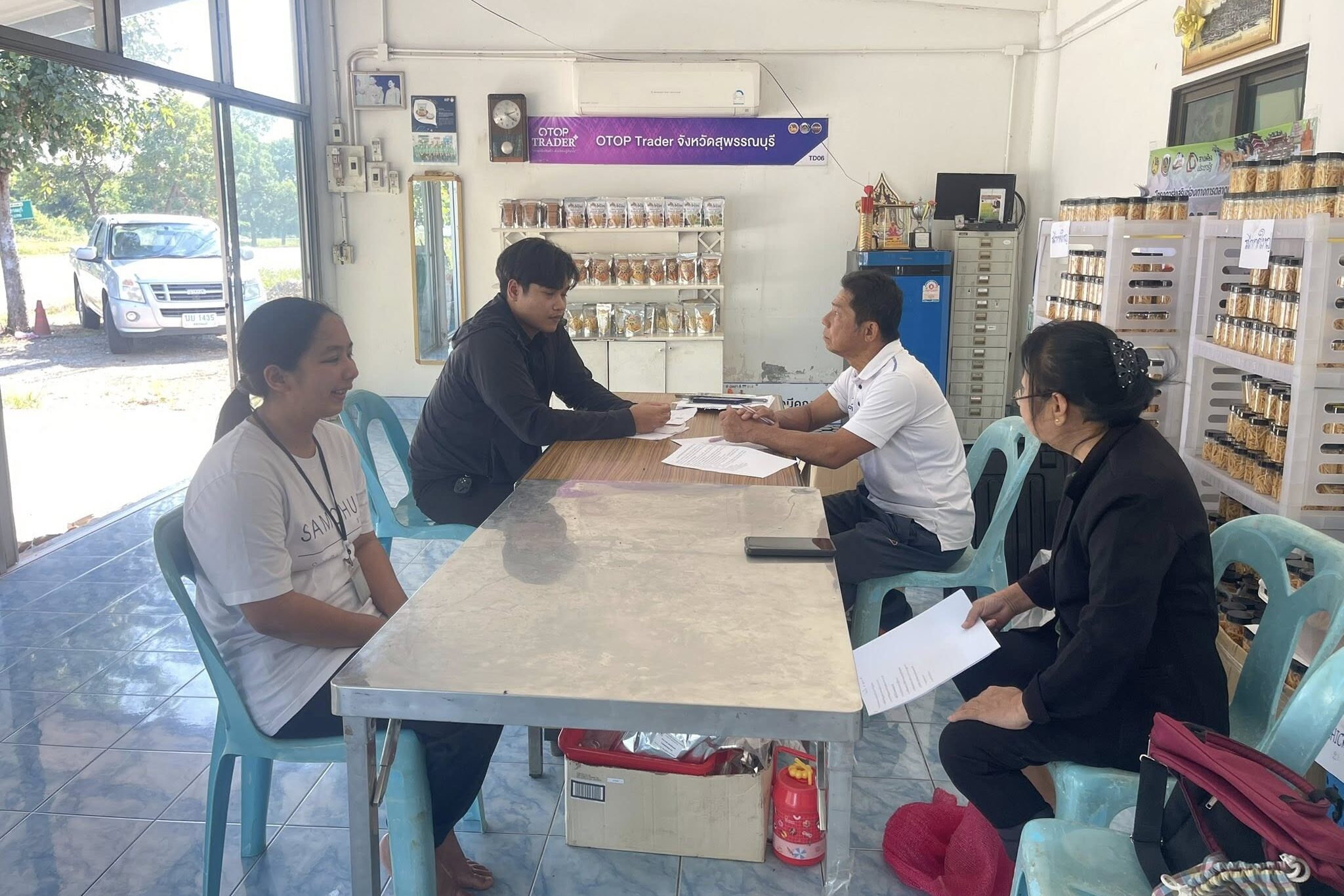 กลุ่มวิสาหกิจชุมชนกลุ่มสตรีแม่บ้าน อสม. แปรรูปผลิตภัณฑ์แห้ว เพื่อแนะนำตัว และสอบถามข้อมูลการ