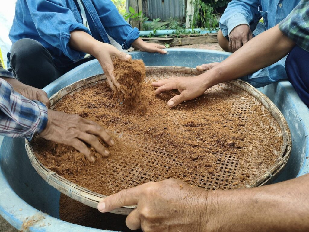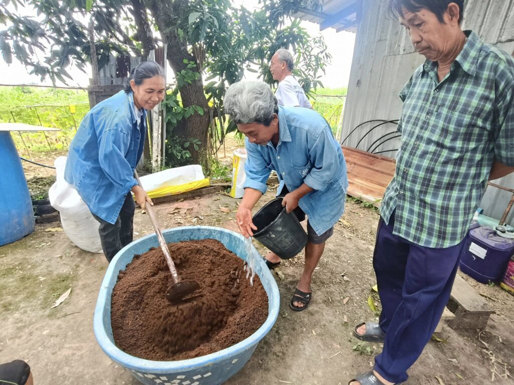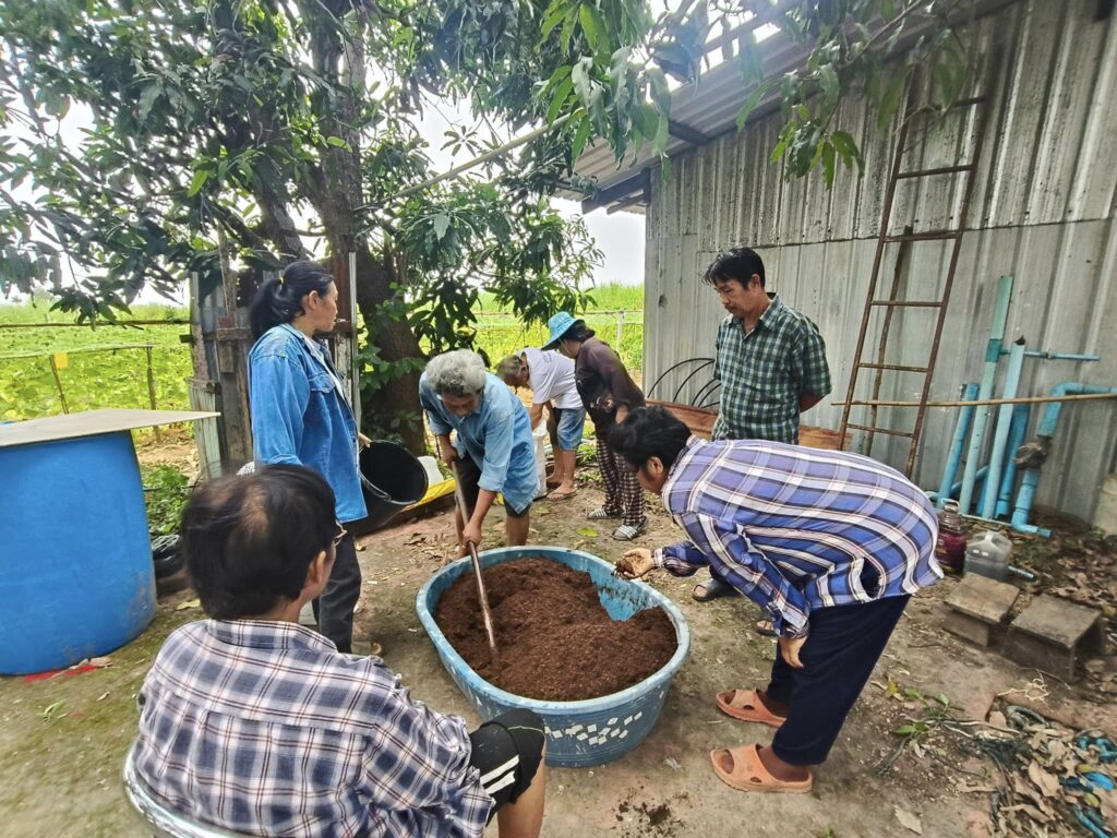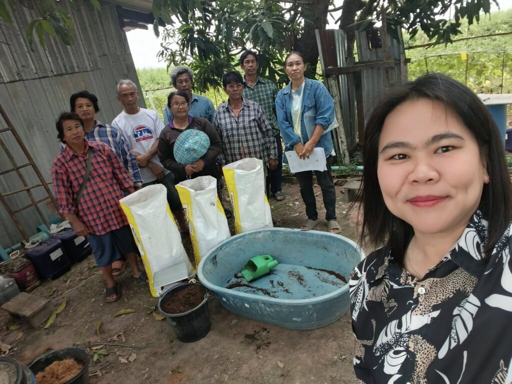 นางสาวกรรณิกา เสือแดง นักวิชาการส่งเสริมการเกษตรชำนาญการ สำนักงานเกษตรอำเภอศรีประจันต์ ติดตามการดำเนินกิจกรรมของกลุ่มวิสาหกิจชุมชนก้าวทฤษฎีใหม่ โดยสมาชิกกลุ่มร่วมกันผลิตวัสดุปลูกเพื่อใช้ในการเพาะต้นกล้าพืชสำหรับสมาชิกในกลุ่มฯ และมีแนวคิดที่จะผลิตเพื่อจำหน่ายให้กับลูกค้าในชุมชนต่อไป และเน้นย้ำเรื่องการต่อทะเบียนวิสาหกิจชุมชน และการปรับปรุงข้อมูลวิสาหกิจชุมชน โดยดำเนินการให้แล้วเสร็จในเดือนมกราคม 2569 พร้อมทั้งประชาสัมพันธ์ข้อมูลข่าวสาร ดังนี้