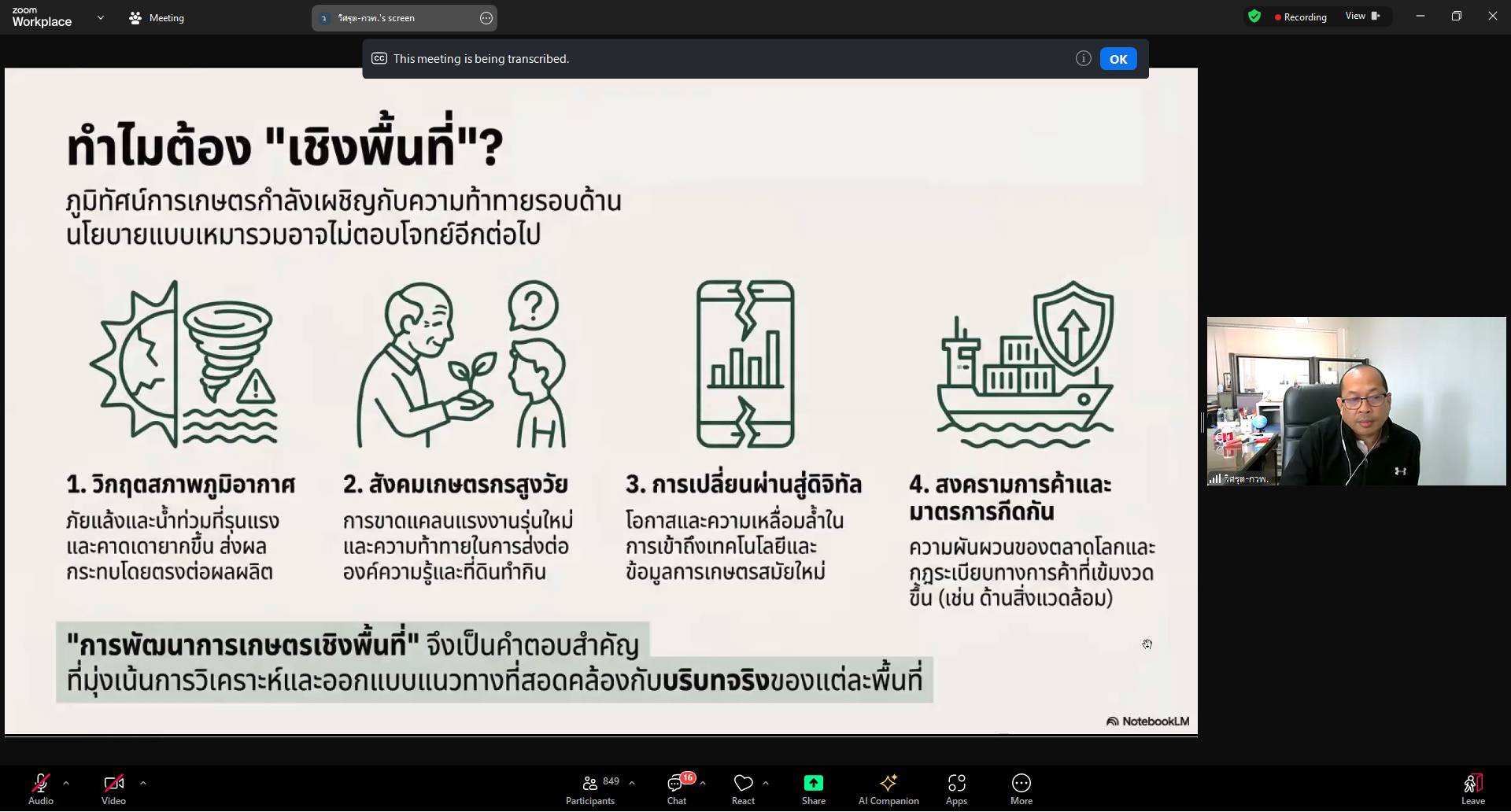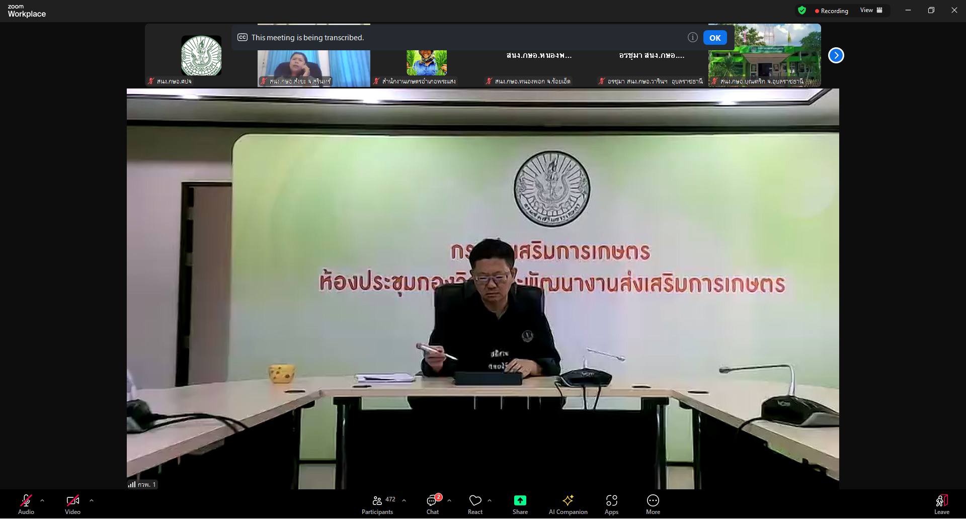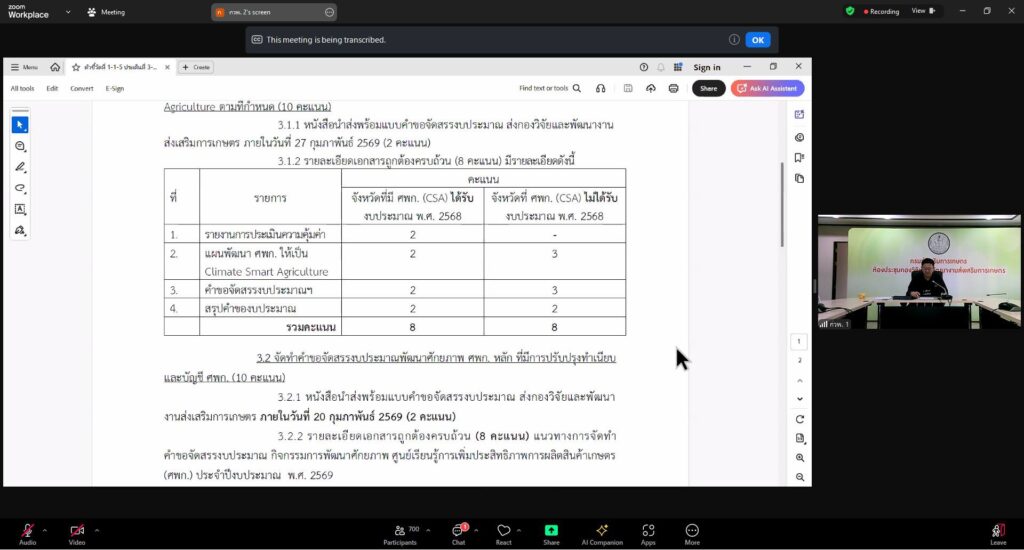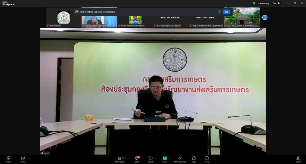 ส่งเสริมการเกษตร 2 ประเด็น ผ่านระบบ Zoom Meeting ดังนี้