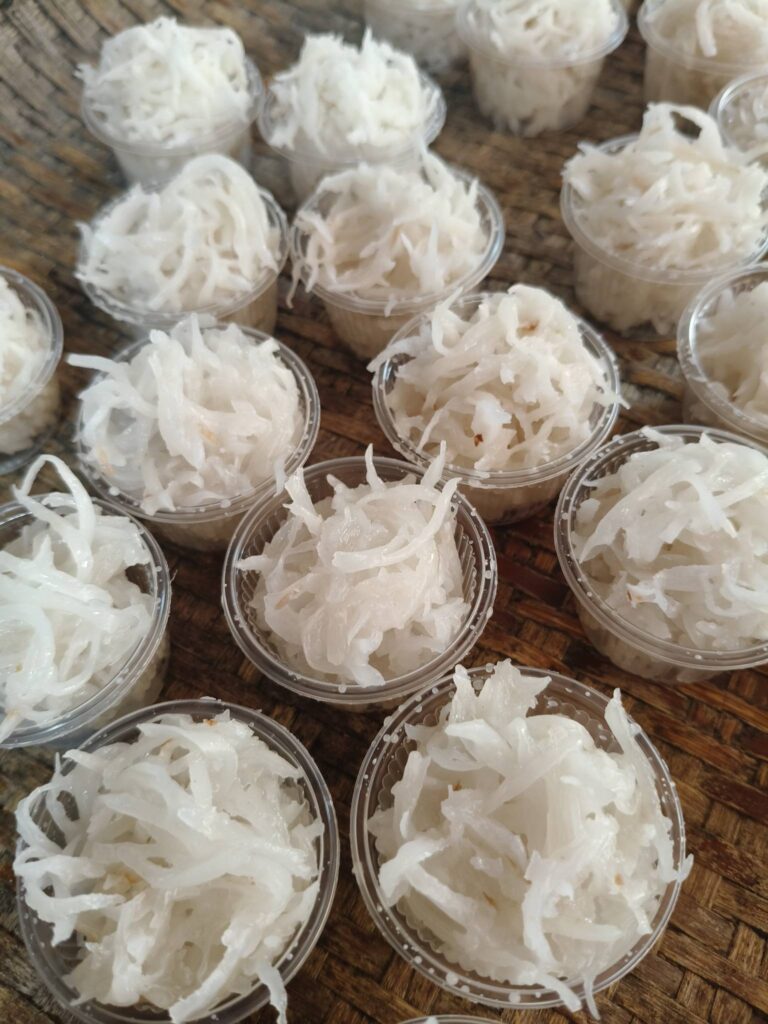 มะพร้าวแก้ว โดยใช้วัตถุดิบในท้องถิ่นเป็นหลัก ทำให้สามารถเพิ่มรายได้ให้กับสมาชิกกลุ่มฯ