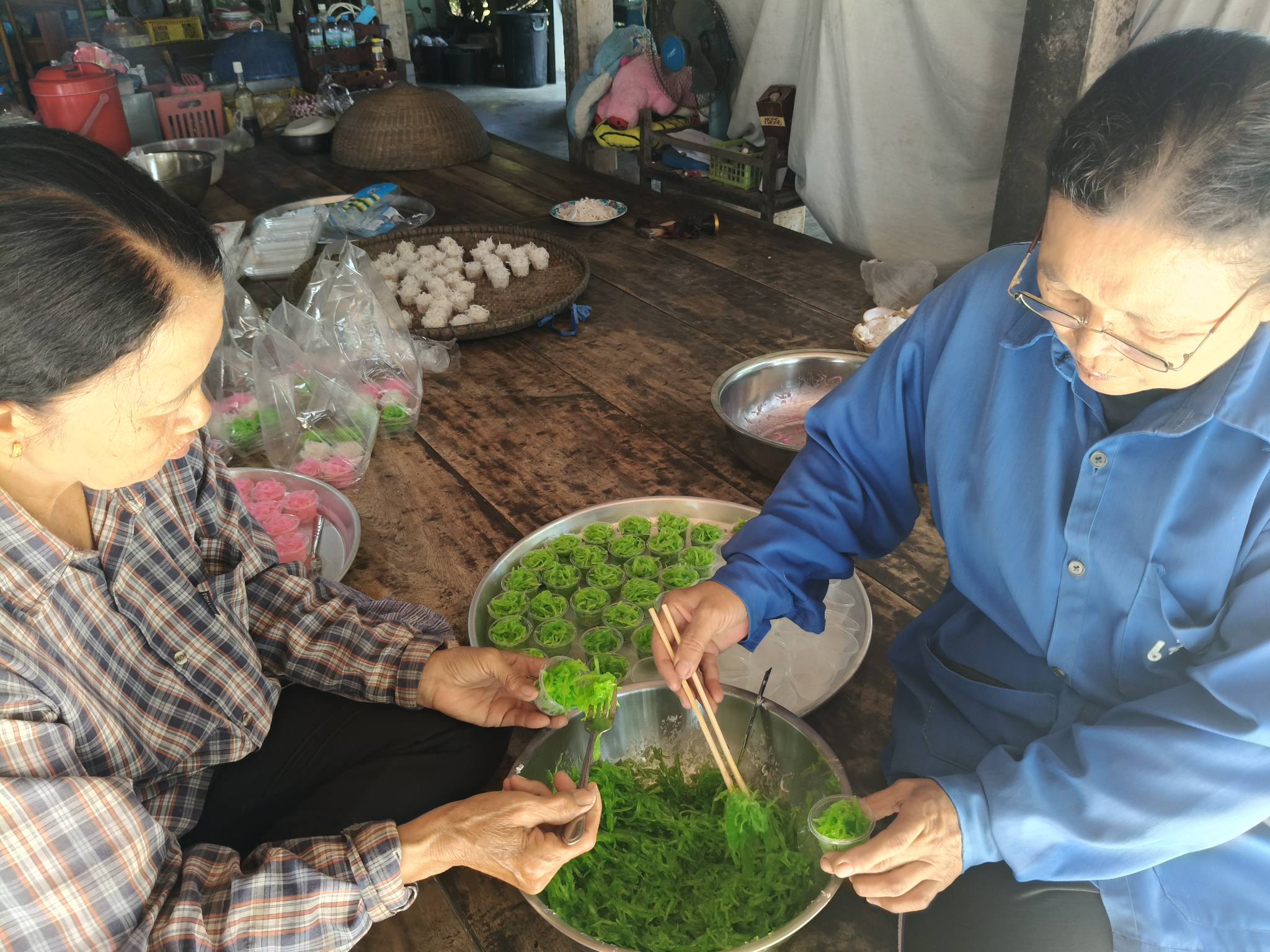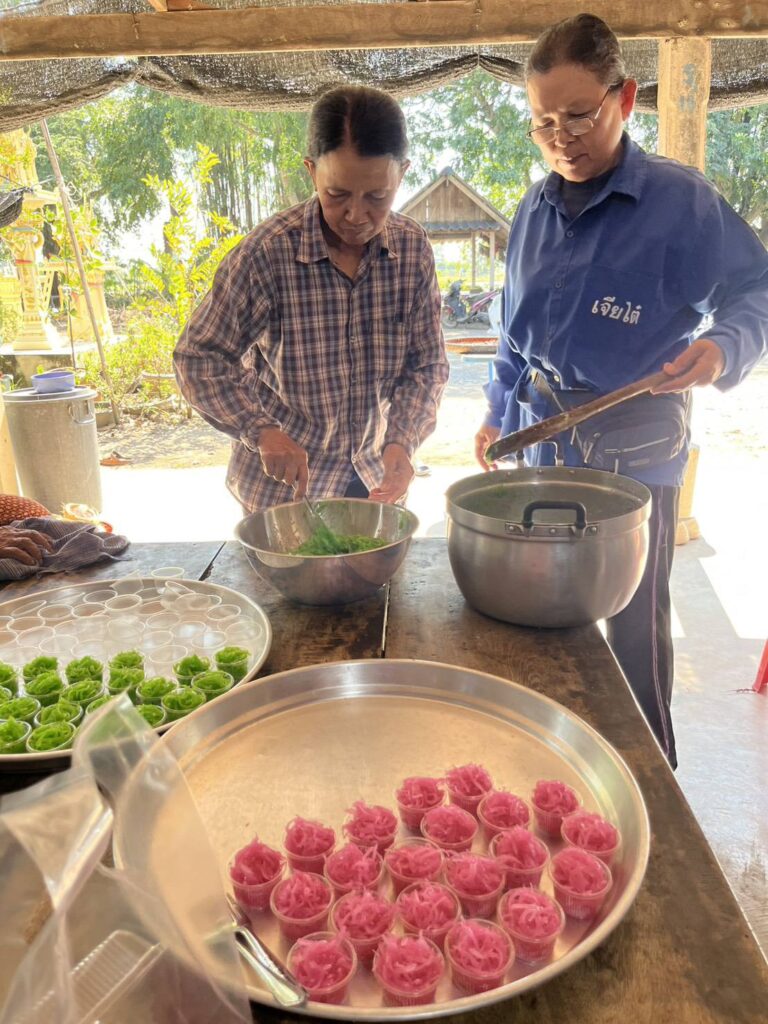 ติดตามการดำเนินกิจกรรมของกลุ่มส่งเสริมอาชีพบ้านคลองชะอม โดยสมาชิกกลุ่มร่วมกันทำขนมไทย