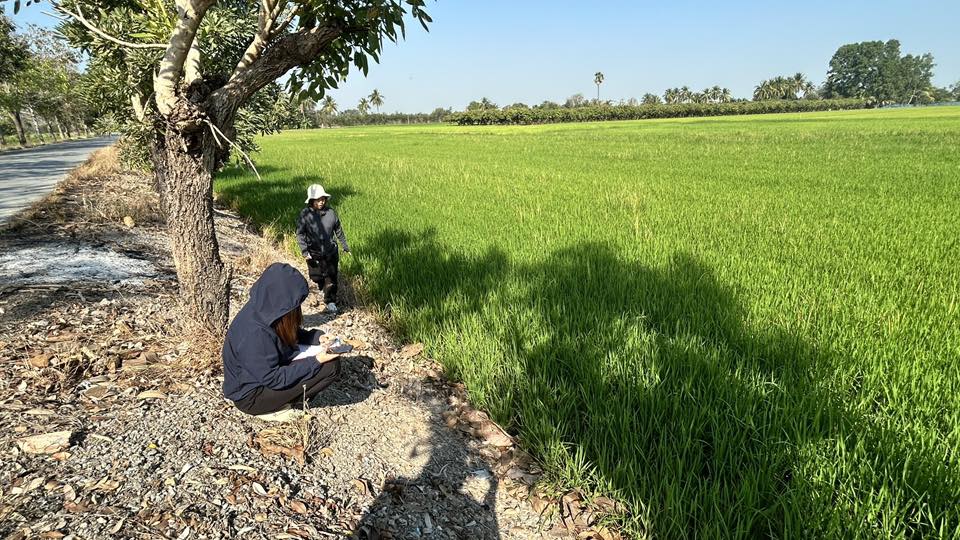 ลงพื้นที่สุ่มสำรวจโรคและแมลงศัตรูข้าว เพื่อประเมินความหนาแน่นของศัตรูพืชระดับพื้นที่ (ด้วยวิธีเร่งด่วน RRA) ในพื้นที่อำเภอศรีประจันต์