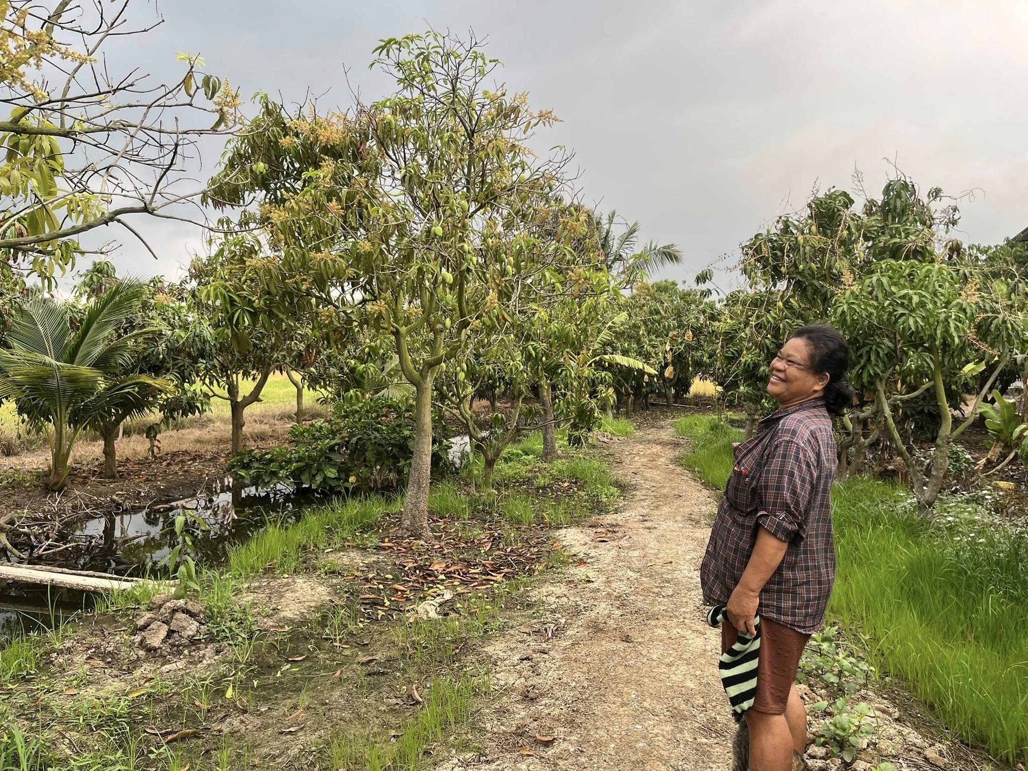 เยี่ยมเยียนนางนิภา ราชรองเมือง smart farmer และประธานกลุ่มแม่บ้านนิภามะพร้าวแก้ว ที่เข้าร่วมโครงการเกษตรทฤษฎีใหม่ ซึ่งเวลาที่ว่างเว้นจากการทำขนมก็จะดำเนินกิจกรรมปลูกไม้ผล เพื่อการจำหน่ายและบริโภค
