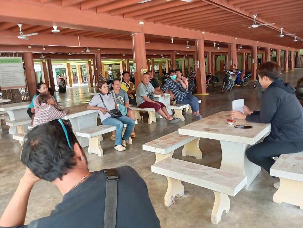 นายพิสิษฐ์ จุสมใจ นักวิชาการส่งเสริมการเกษตรปฏิบัติการ ลงพื้นที่ร่วมกับผู้นำหมู่บ้าน และอาสาสมัครเกษตร