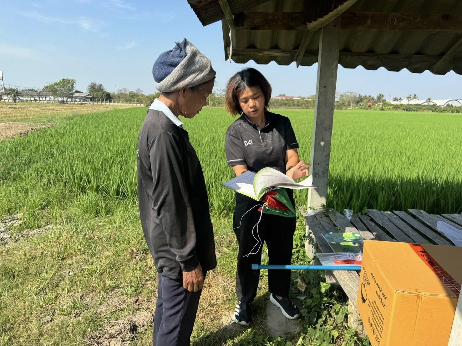 🟠 เยี่ยมเยียนกิจกรรมทางการเกษตรของนางสาวลมัย เรือนคง ซึ่งเป็นจุดเรียนรู้ด้านการทำการเกษตรที่เป็นมิตรกับสิ่งแวดล้อม / เกษตรทฤษฎีใหม่ / Smart Farmer และยังสมาชิกกลุ่ม 1 คน 1 จุด 1 ชนิดพืช โดยนางสาวลมัย เรือนคง ได้ดำเนินกิจกรรมการปลูกข้าว ส่งศูนย์เมล็ดพันธุ์ข้าวสุพรรณบุรี พร้อมทั้งส่งมอบป้ายแปลงติดตามสถานการณ์ศัตรูพืช สวิงโฉบแมลงสมุดจดบันทึก และอุปกรณ์อื่นๆ