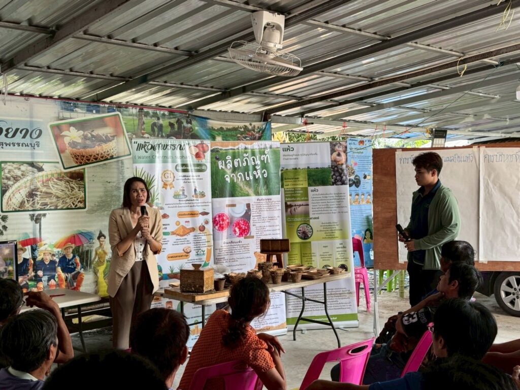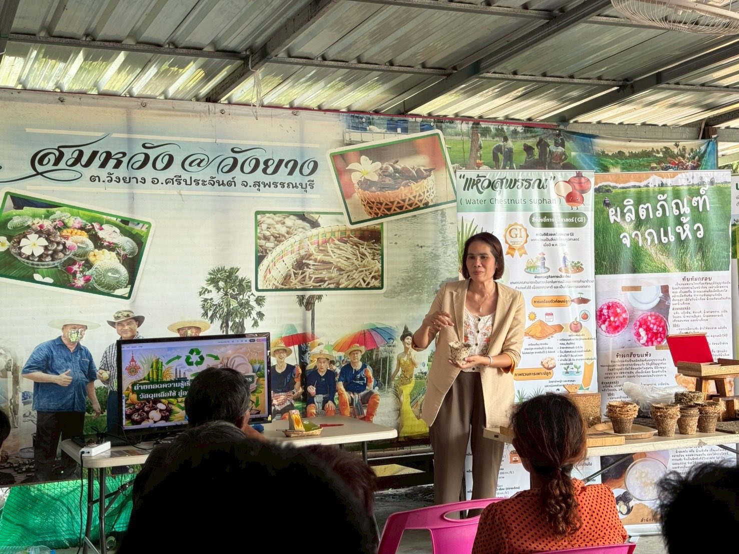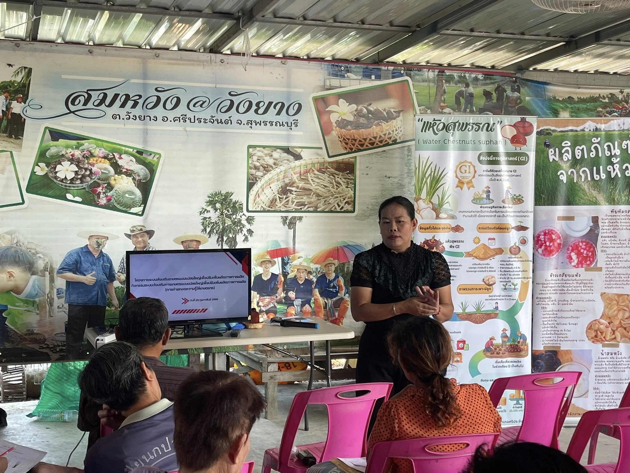 นางอรุณี อนันต์เวชานุวัฒน์ เกษตรอำเภอศรีประจันต์ และเจ้าหน้าที่สำนักงานเกษตรอำเภอศรีประจันต์ จัดอบรมถ่ายทอดความรู้ให้เกษตรกร กลุ่มแปลงใหญ่แห้วจีน ตำบลวังยาง อำเภอศรีประจันต์ จังหวัดสุพรรณบุรี โดยเชิญวิทยากรจากศูนย์ส่งเสริมเทคโนโลยีการเกษตรด้านอารักขาพืช จังหวัดสุพรรณบุรี นางสาวกฤติยา ศรีศักดา นักวิชาการส่งเสริมการเกษตรชำนาญการ ให้ความรู้เรื่อง การจัดการโรคและแมลงในแห้ว และนางสาวณิชาภา มินาบูลย์ ผู้ช่วยศาสตราจารย์คณะวิศวกรรมศาสตร์ มหาวิทยาลัยเทคโนโลยีราชมงคลรัตนโกสินทร์ ให้ความรู้เรื่อง การบริหารจัดการเศษวัสดุเหลือใช้ สู่อาชีพเสริม เพิ่มรายได้ ให้แก่สมาชิกแปลงใหญ่ได้นำไปปรับใช้ในพื้นที่