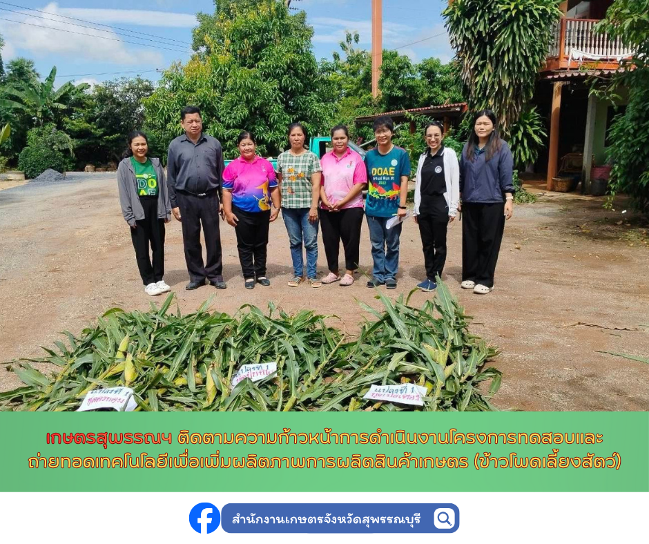 เกษตรสุพรรณฯ ติดตามความก้าวหน้าการดำเนินงานโครงการทดสอบและถ่ายทอดเทคโนโลยีเพื่อเพิ่มผลิตภาพการผลิตสินค้าเกษตร (ข้าวโพดเลี้ยงสัตว์)