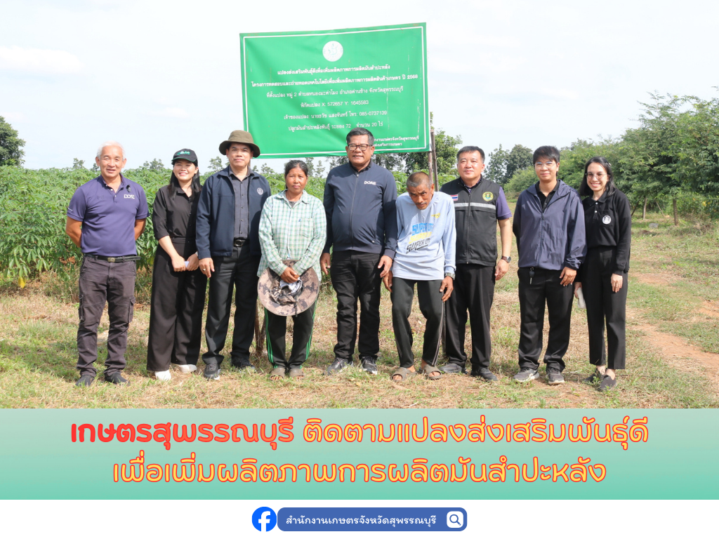 เกษตรสุพรรณบุรี ติดตามแปลงส่งเสริมพันธุ์ดีเพื่อเพิ่มผลิตภาพการผลิตมันสำปะหลัง