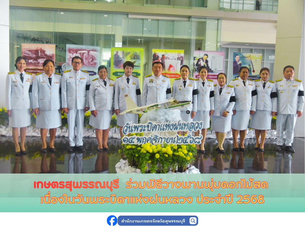 เกษตรสุพรรณบุรี ร่วมพิธีวางพานพุ่มดอกไม้สด เนื่องในวันพระบิดาแห่งฝนหลวง ประจำปี 2568