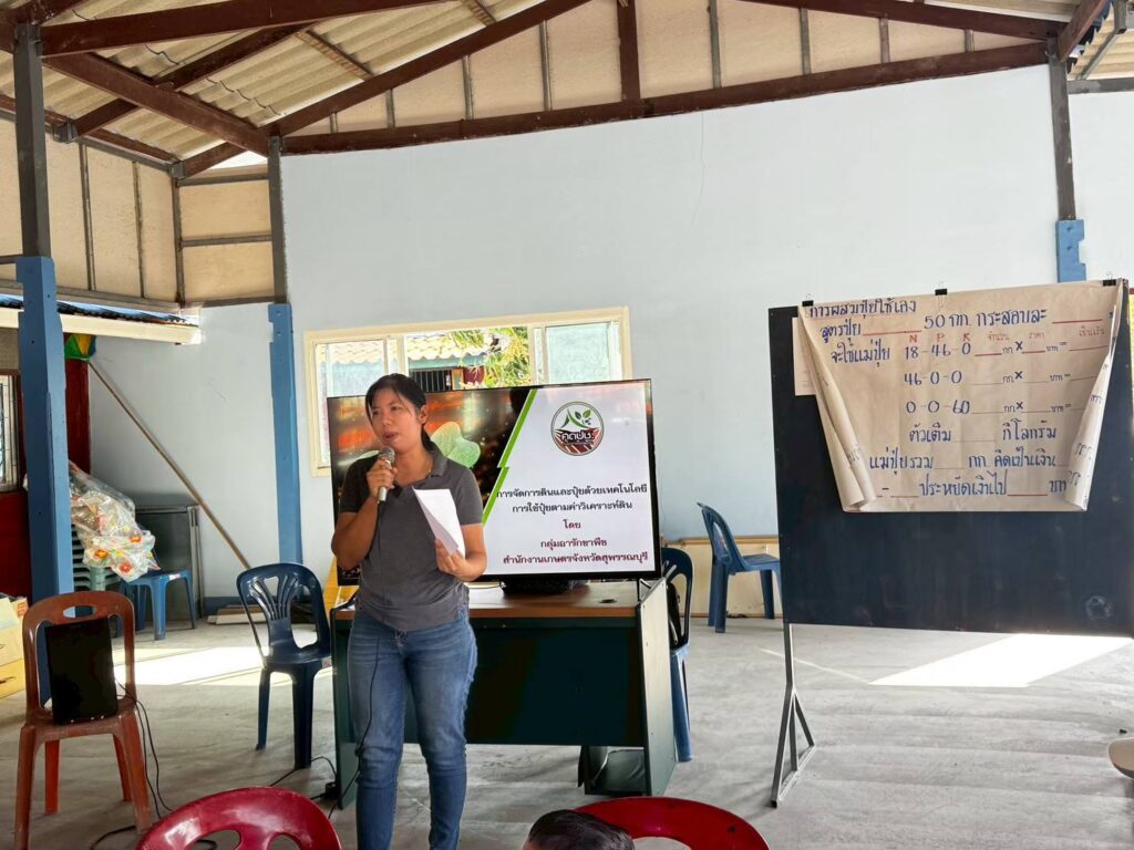 วันที่ 5 มีนาคม 2569 นางสาวมานิดาเสาวลักษณ์ นักวิชาการส่งเสริมการเกษตร รับผิดชอบตำบล บ้านกลุ่ม ตำบล บางตะเคียนและตำบลบางตาเถร อำเภอสองพี่น้องจังหวัดสุพรรณบุรี จัดอบรมให้ความรู้แก่สมาชิก 1 คน 1 กลุ่ม 1 ชนิดพืช จำนวนเกษตรกร 20 ราย เรื่อง การผสมปุ๋ยใช้เอง โดยการใช้ แผ่นวงกลมผสมปุ๋ยใช้เอง คือการนำแม่ปุ๋ยไนโตรเจน, ฟอสฟอรัส (P) และโพแทสเซียม (K) มาคลุกเคล้ากันให้ได้สูตรที่ต้องการ ช่วยประหยัดต้นทุนและเพิ่มประสิทธิภาพการบำรุงพืช ตัวอย่างสูตรผสมเอง เช่น ปุ๋ย 15-15-15 หรือสูตรเฉพาะพืช ซึ่งนิยมใช้แม่ปุ๋ยหลักๆ คือ (46-0-0), (18-46-0) (0-0-60) ณที่ทำการผู้ใหญ่บ้าน หมู่ที่ 2 ตำบลบ้านกุ่มอำเภอสองพี่น้อง จังหวัดสุพรรณบุรี