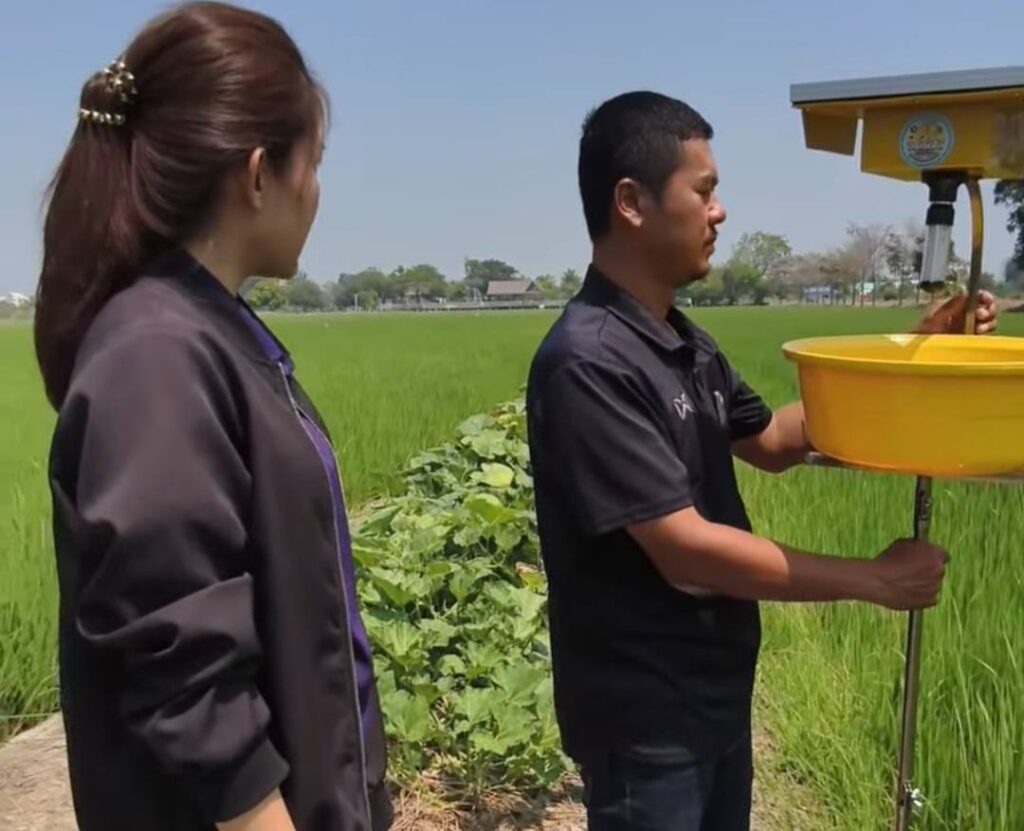 วันที่ 5 มีนาคม 2569 นางสาวพิกุลแก้ว วงศ์สุวรรณ เกษตรอำเภอสองพี่น้อง พร้อมด้วยนางสาววรรณา พลอยศรี นักวิชาการส่งเสริมการเกษตรปฏิบัติการรับผิดชอบงานส่งเสริมการเกษตรตำบลบางเลน ดำเนินการส่งมอบ เครื่องกับดักแมลงโซล่าเซลล์แบบอัตโนมัติ ให้แก่เกษตรกรผู้ปลูกข้าวในพื้นที่ ซึ่งได้รับการสนับสนุนจาก สำนักงานนวัตกรรมแห่งชาติ (NIA) ภายใต้โครงการขยายผลธุรกิจนวัตกรรมในพื้นที่ระเบียงเศรษฐกิจพิเศษ ภาคกลาง–ตะวันตก นวัตกรรมดังกล่าวเป็นกับดักแสงไฟที่ใช้พลังงานสะอาดจากโซล่าเซลล์ มีวัตถุประสงค์เพื่อลดความเสียหายของผลผลิตทางการเกษตรจากการเข้าทำลายของหนอน ด้วง และแมลงศัตรูพืชที่ออกหากินในเวลากลางคืน ช่วยลดการใช้สารเคมีทางการเกษตร ลดปัญหาการตกค้างของสารพิษในผลผลิต และส่งเสริมสุขภาวะที่ดีให้แก่เกษตรกรในระยะยาว ทั้งนี้ การส่งมอบเครื่องกับดักแมลงโซล่าเซลล์ในครั้งนี้ ยังเป็นจุดเรียนรู้ด้านการใช้เทคโนโลยีและนวัตกรรมทางการเกษตร ให้แก่เกษตรกรในพื้นที่ รวมถึงผู้ที่สนใจ เพื่อสามารถนำองค์ความรู้ไปประยุกต์ใช้ในการจัดการศัตรูพืชอย่างเหมาะสมและเป็นมิตรต่อสิ่งแวดล้อมต่อไป ณ แปลงเกษตรกร หมู่ที่ 3 ตำบล บางเลน อำเภอสองพี่น้อง จังหวัด สุพรรณบุรี