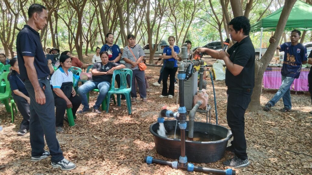 วันที่ 25 มีนาคม 2569 นางสาวนิภาพร สมศรี นักวิชการการส่งเสริมการเกษตรชำนาญการ สำนักงานเกษตรอำเภอสองพี่น้อง จัดอบรมโครงการส่งเสริมการดำเนินงานโครงการอันเนื่องมาจากพระราชดำริ โดยมีวัตถุประสงค์เพื่อ ถ่ายทอดความรู้หลักสูตรการใช้น้ำอย่างรู้คุณค่าสำหรับเกษตรกรในพื้นที่ โดยมีวิทยากรจาก ศูนย์ส่งเสริมเทคโนโลยีการเกษตรด้านวิศวกรรมเกษตร จังหวัดชัยนาท และ วิทยากรจาก โครงการส่งน้ำและบำรุงรักษาสองพี่น้อง มาให้ความรู้ในครั้งนี้ มีเกษตรกรเข้าร่วมการอบรม จำนวน 50 ราย ณ ไร่จอมยุทธ์ หมู่ 6 ตำบลทุ่งคอก อำเภอสองพี่น้อง จังหวัดสุพรรณบุรี