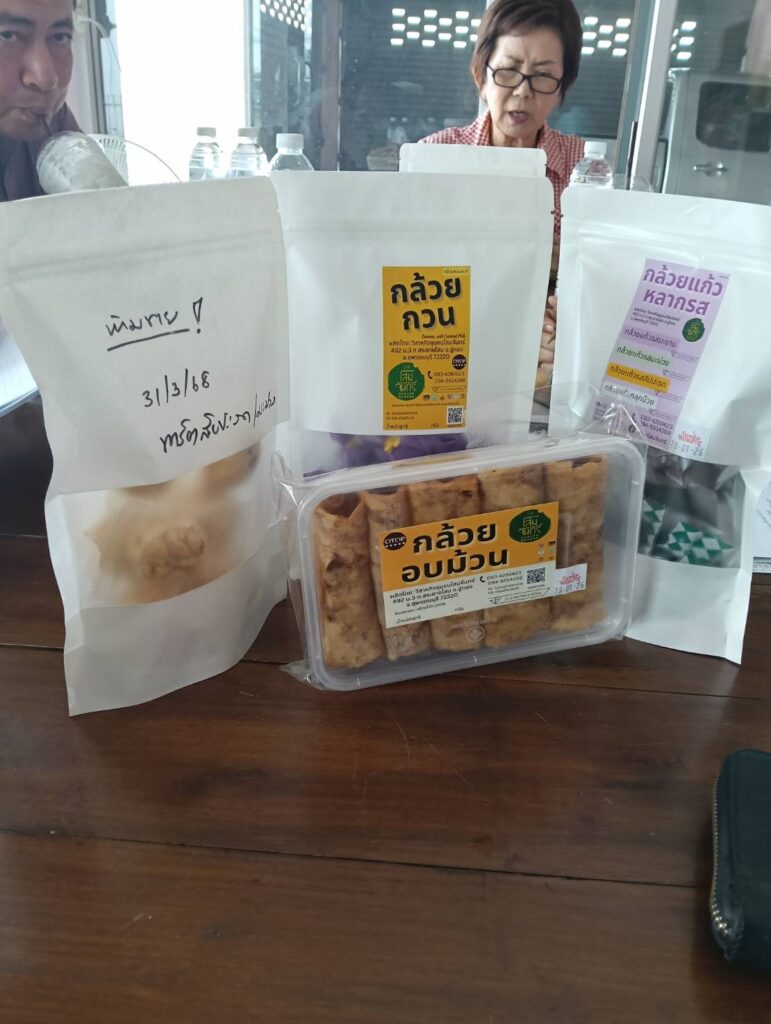 วันพุธที่ 15 ตุลาคม 2568 เจ้าหน้าที่สำนักงานเกษตรอำเภออู่ทอง ติดตามเยี่ยมเยียนกิจกรรมของวิสาหกิจชุมชนโสมจันทร์ หมู่ที่ 3 ตำบลสระยายโสม อำเภออู่ทอง จังหวัดสุพรรณบุรี มีกิจกรรมการแปรรูปกล้วย และได้สมัครเข้าร่วมกิจกรรม การพัฒนาวิสาหกิจชุมชนสู่ผู้ประกอบการธุรกิจเกษตรต้นแบบ ภายใต้โครงการส่งเสริมและพัฒนาผู้ประกอบการวิสาหกิจชุมชน ประจำปีงบประมาณ พ.ศ. 2569