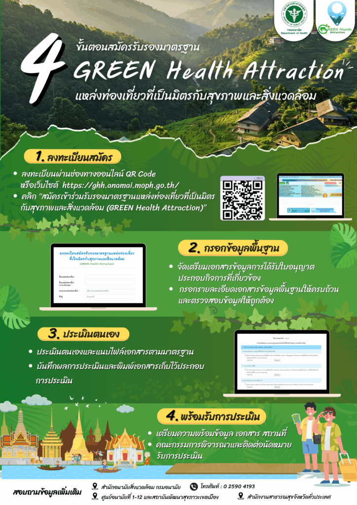 เป็นมิตรกับสุขภาพและสิ่งแวดล้อม (GREEN Health Attraction) สามารถลงทะเบียนได้ที่เว็บไซต์