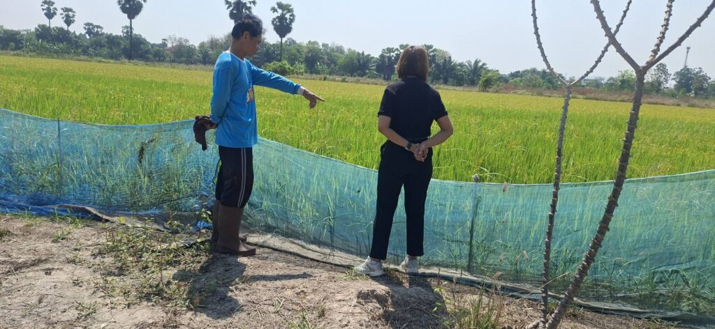 ติดตามการจัดการแปลงปลูกข้าว การจัดการดินปุุ๋ย พร้อมทั้งประชาสัมพันธ์ลดการเผาในพื้นที่การเกษตร นายสมบูรณ์ เณรจาที สมาชิกแปลงใหญ่ทั่วไปข้าวบ้านโข้ง
