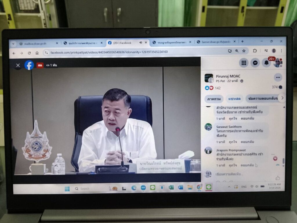 เข้าร่วมประชุมชี้แจงการใช้งานระบบศูนย์บริการเกษตรพิรุณราช ผ่าน Facebook Live กลุ่ม “อบรมการใช้งานการให้บริการระบบศูนย์บริการเกษตรพิรุณราช” โดยมีนายวิณะโรจน์ ทรัพย์ส่งสุข ปลัดกระทรวงเกษตรและสหกรณ์ เป็นประธาน