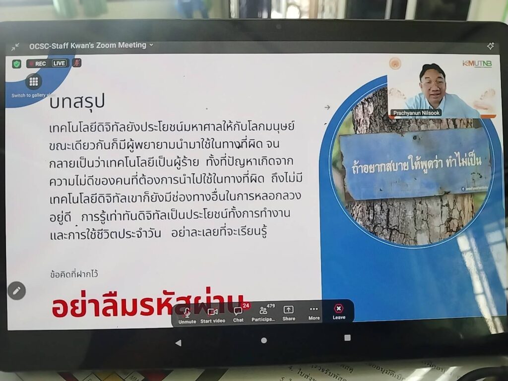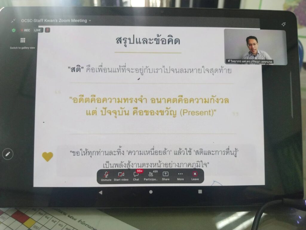 เข้าร่วมฝึกอบรมโครงการเสริมสร้างศักยภาพและพัฒนาดุลยภาพของข้าราชการ ผ่านระบบออนไลน์ จัดโดยสำนักงาน ก.พ. เพื่อเตรียมความพร้อมให้แก่ข้าราชการในการดำเนินชีวิตและวางแผนชีวิตก่อนการเกษียณอายุราชการ ครอบคลุมการบริหารการเงิน การใช้เทคโนโลยีดิจิทัลที่ปลอดภัย การดูแลสุขภาพสวัสดิการและสิทธิประโยชน์ต่างๆ